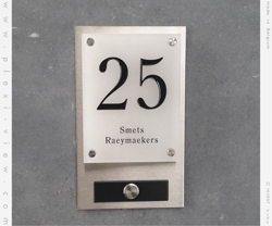 Huisnummer stijlvol gecombineerd met deurbel.Exclusief en tijdloo