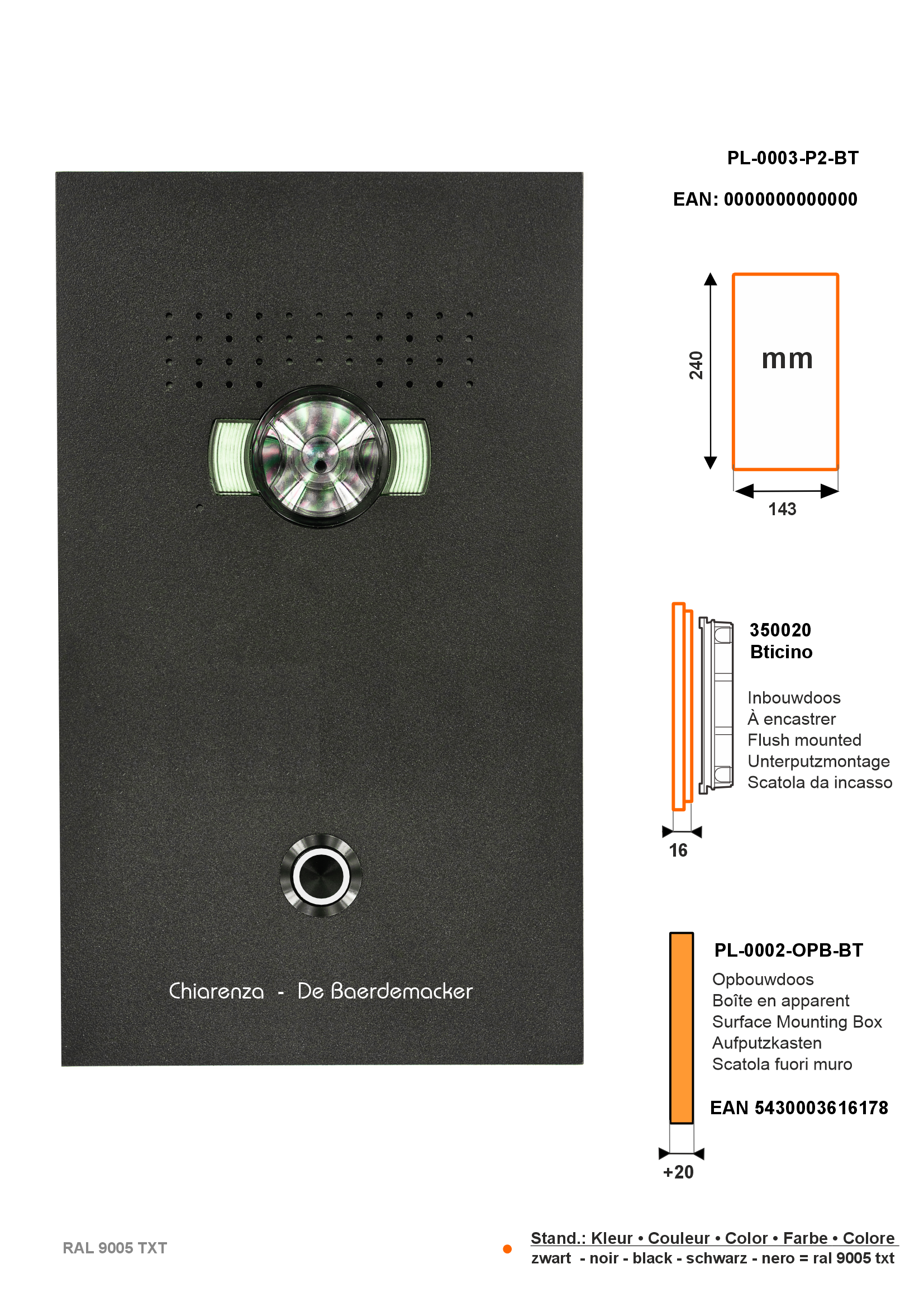 - Frontplatte in RAL-Farbe. (IP54 - IK08)