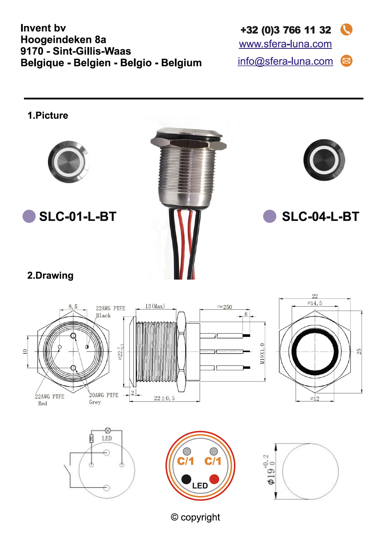 - Connexion bouton poussoir: 0-50 volt - 2 amp. max.