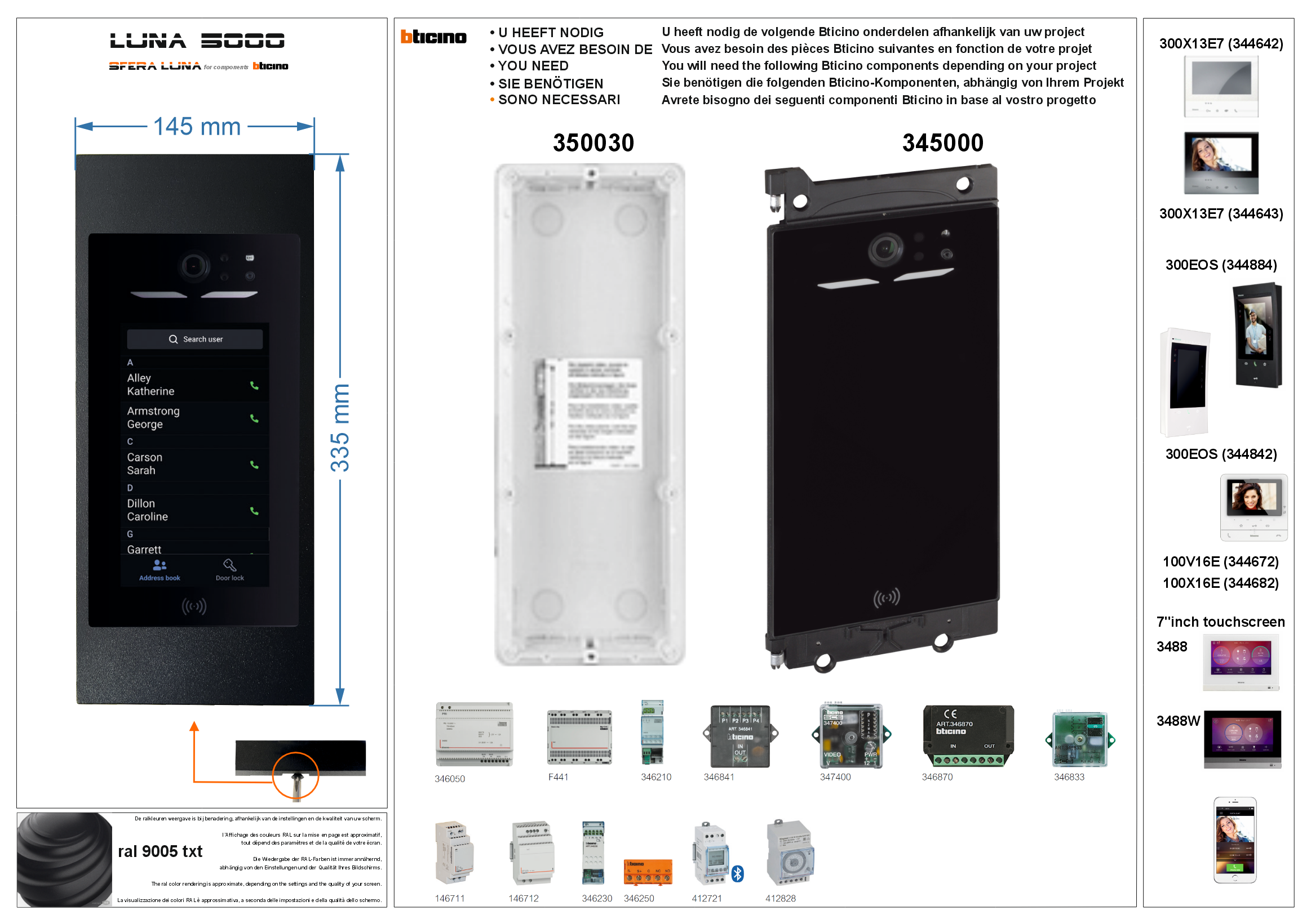LUNA 5000 Premium-Frontpanel (für Bticino 354000 Touchmodul)