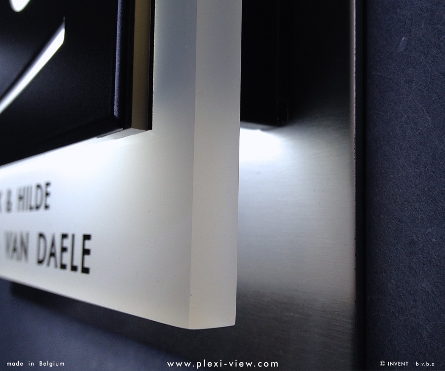 Die Hausnummer ist LED-beleuchtet. Die Namen sind graviert und lackiert.