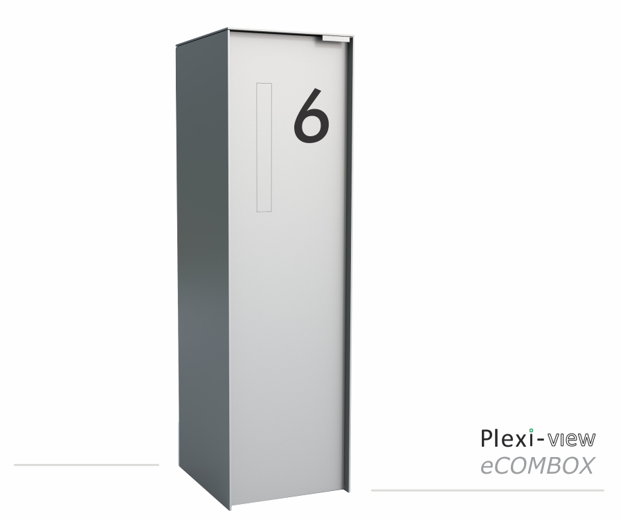 La partie supérieure est équipée d'un compartiment quasi invisible pour les colis postaux. Ce compartiment comporte un dispositif anti-vol. A l'avant se trouve un clapet vertical entièrement plat s'ouvrant vers l'intérieur. A l'intérieur la base est amovible de manière à pouvoir doubler le volume de courrier (idéal pendant les vacances). La plaque de base est pourvue de perforations pour l'écoulement de l'eau et d'un profil spécial pour éviter à votre courrier d'être endommagé par la condensation.