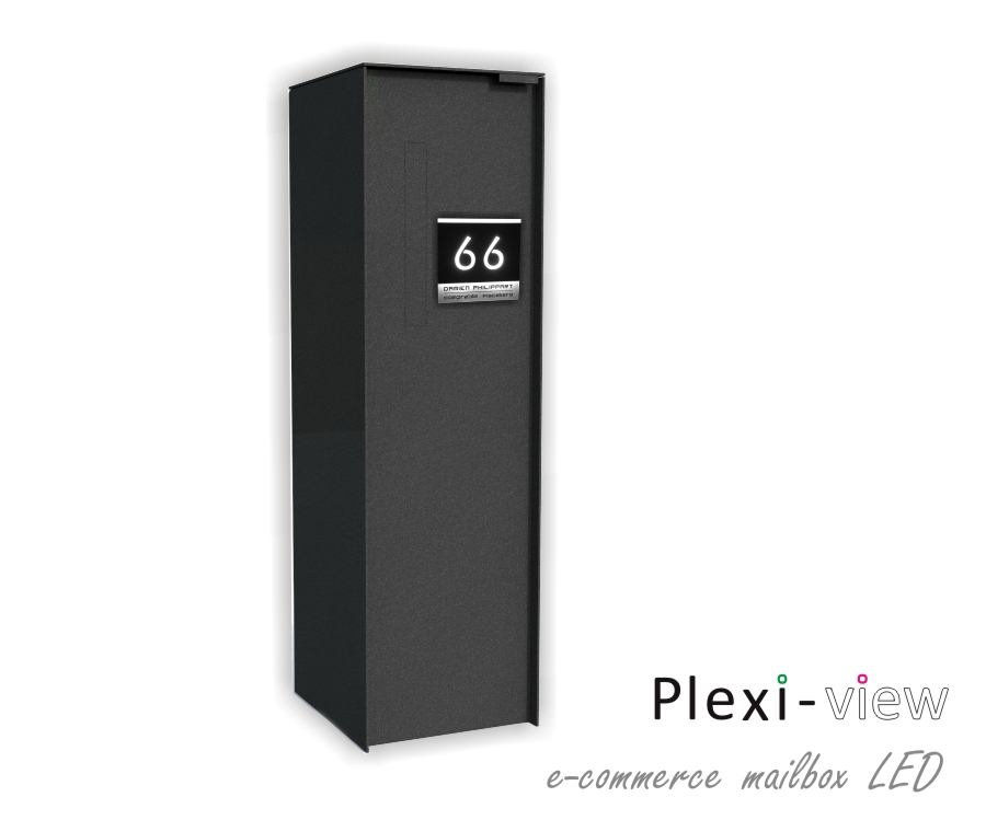 La partie supérieure est équipée d'un compartiment quasi invisible pour les colis postaux. Ce compartiment comporte un dispositif anti-vol. A l'avant se trouve un clapet vertical entièrement plat s'ouvrant vers l'intérieur. A l'intérieur la base est amovible de manière à pouvoir doubler le volume de courrier (idéal pendant les vacances). La plaque de base est pourvue de perforations pour l'écoulement de l'eau et d'un profil spécial pour éviter à votre courrier d'être endommagé par la condensation.
