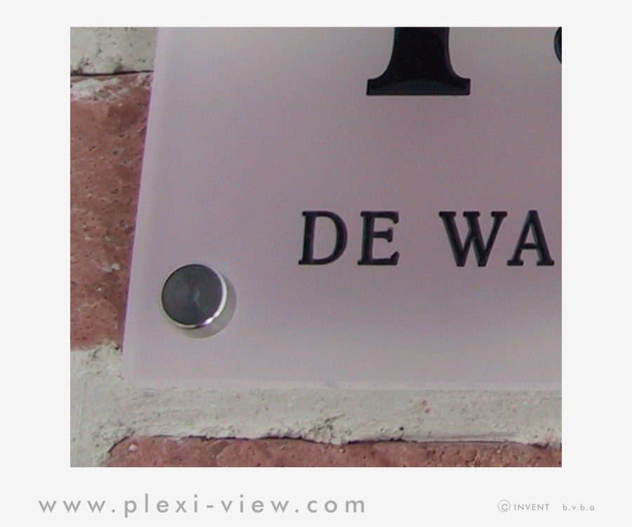 2) MONTAGESET ZONDER TE BOREN, enkel voor PLEXI MAT : de PLEXI MAT is zelfklevend voorbereid met een kleefkit instant. Perfecte montage voor blauwsteen, brievenbussen, crepie achtergronden, indien men geen gaten wenst te boren of men is geen handige Harry. De huisnummer is NIET AFNEEMBAAR. (kan ook in combinatie met achtergrondplaat) Deze montage is snel en eenvoudig.
