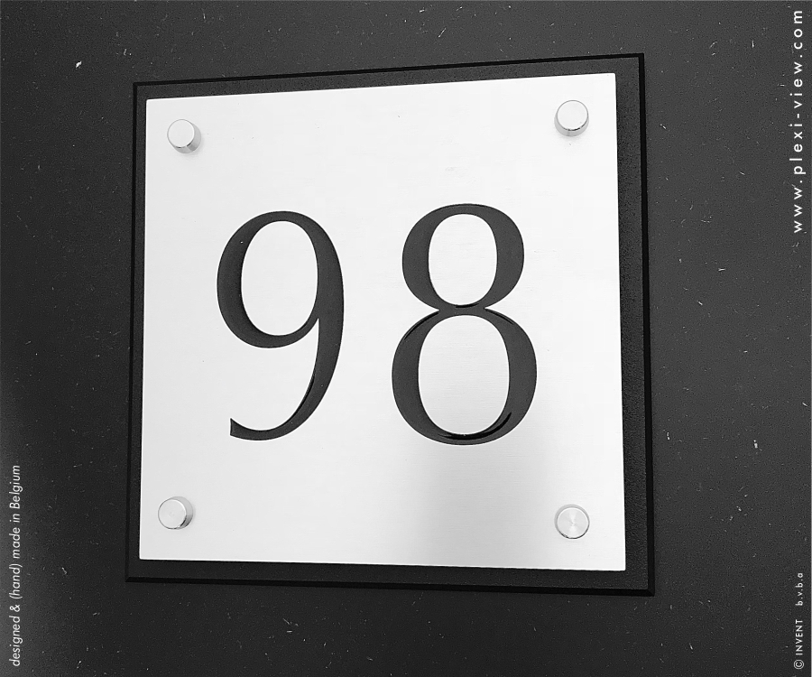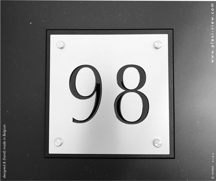 d) MONTAGESET ZONDER TE BOREN OM TE KLEVEN alleen mogelijk met achterplaat: achterplaat is zelfklevend voorbereid en kleeft op alle ondergronden. De huisnummer/naamplaat IS afneembaar met eenvoudig schroefsysteem en sierkapjes. Ideaal voor montage op blauwsteen, brievenbussen, crepie achtergronden, indien men geen gaten wenst te boren of men is geen handige Harry, snel en eenvoudig.