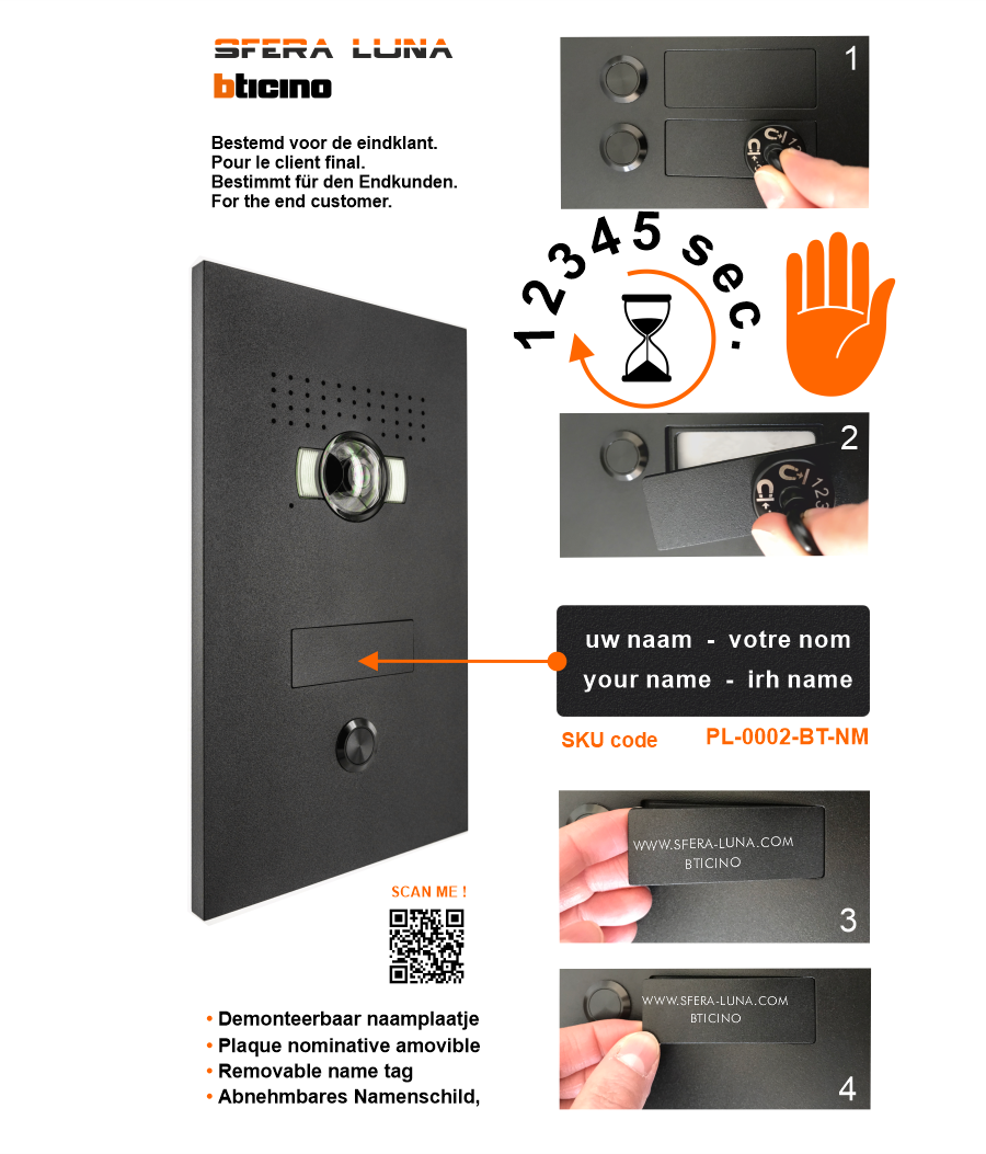 - Platine de rue de vidéo SFERA LUNA avec 1 plaque nominative amovible.