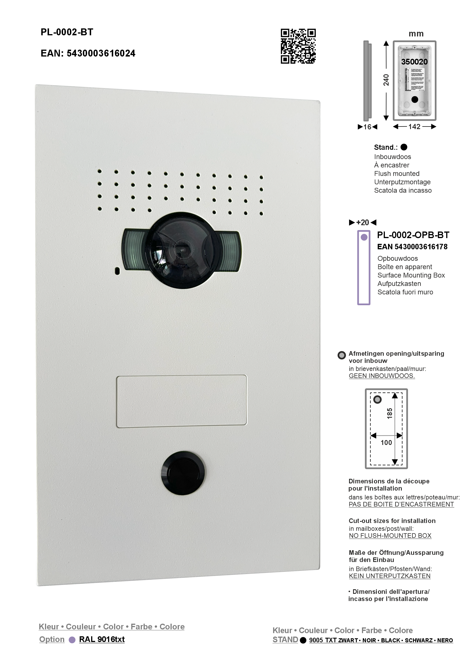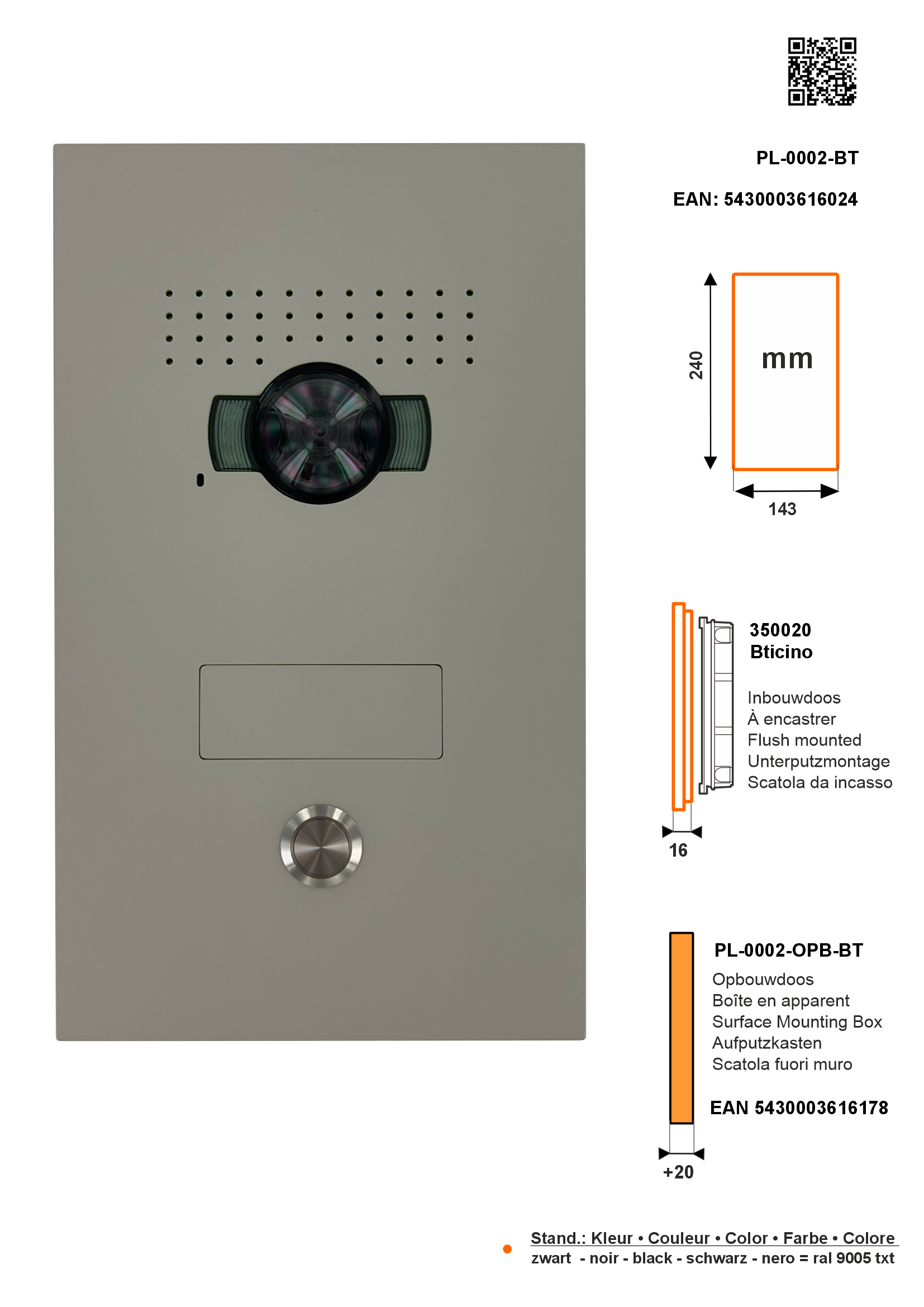 - Plaque frontale en couleur RAL. (IP54 - IK08)