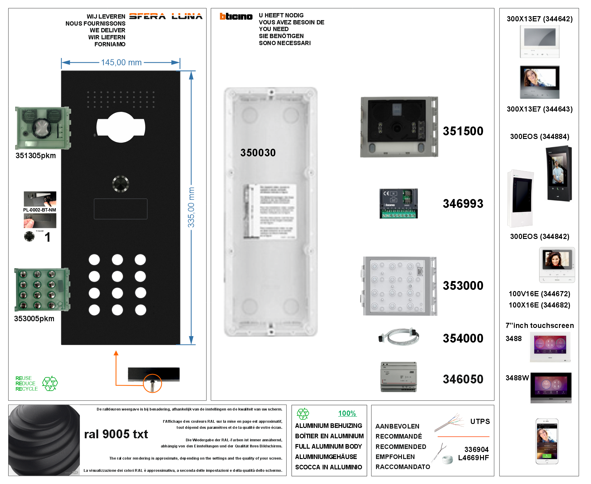 Preferably use twisted cable Bticino REF 336904 or UTP5 for the connection.