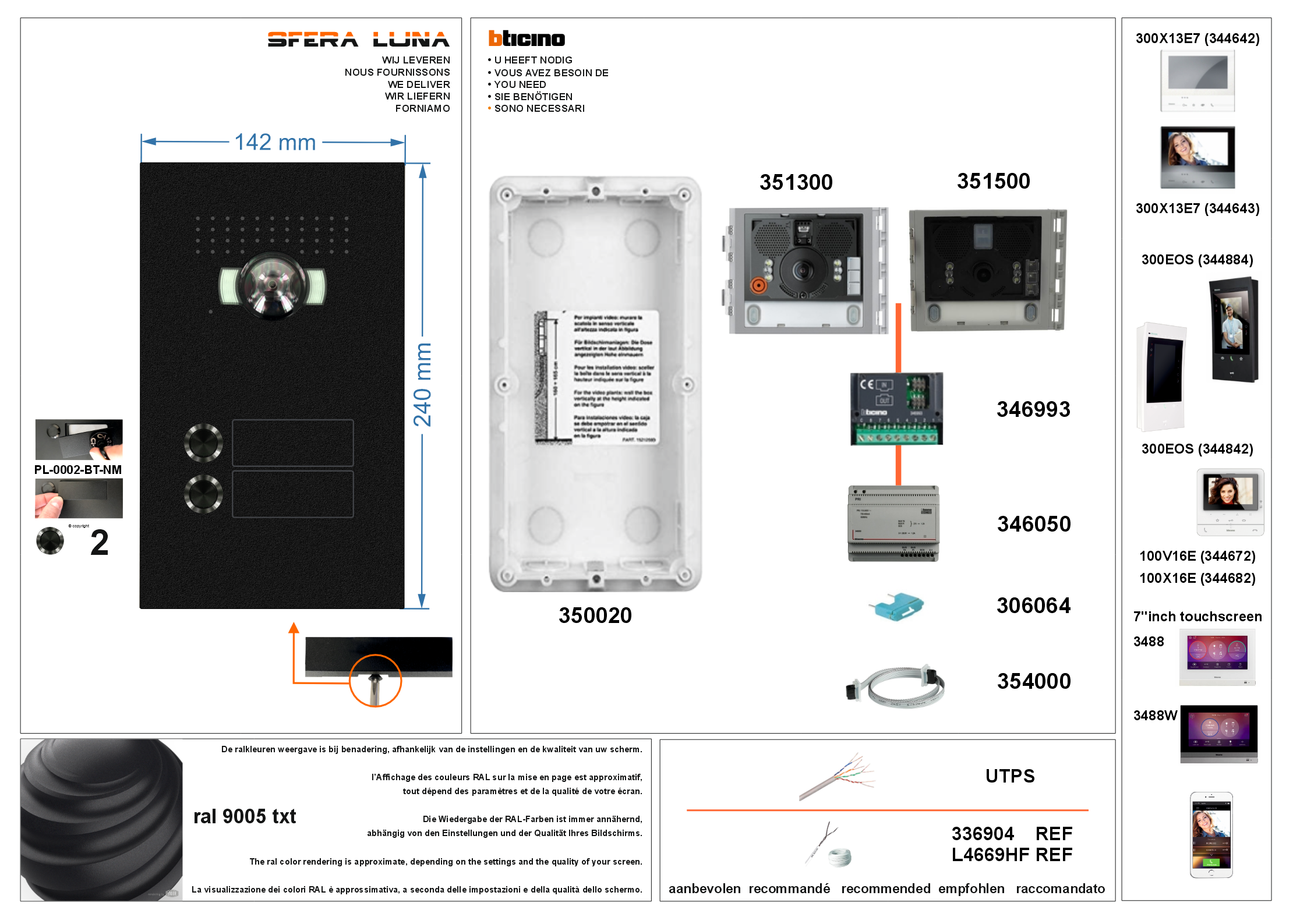 Compatible avec tous les postes intérieurs de Bticino et de préférence avec : AVT-Classe 100X16E (344682) ou Classe 300EOS ref. 344842 Ces composants Bticino sont disponbiles: