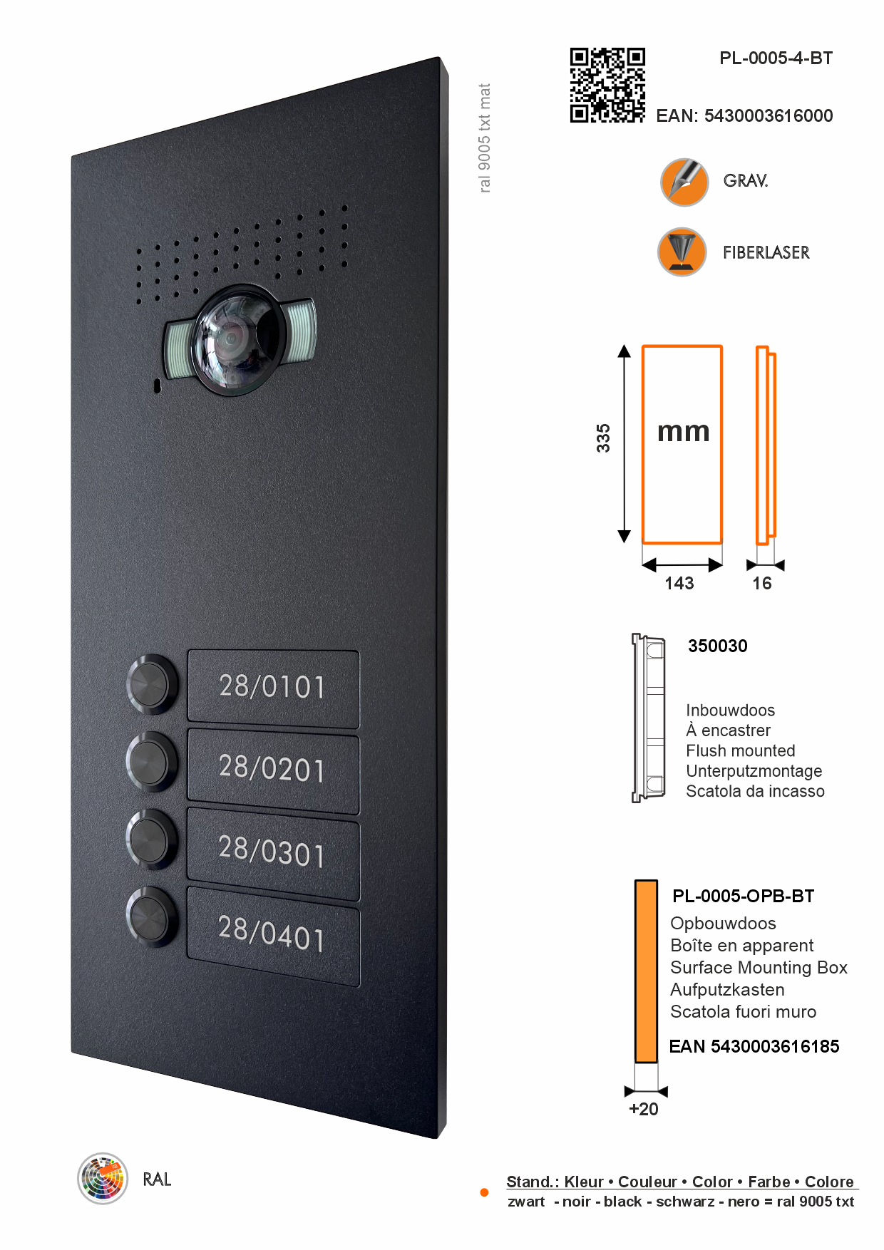 Disponibile come opzione: scatola da incasso, parasole antipioggia, scatola da incasso 45%