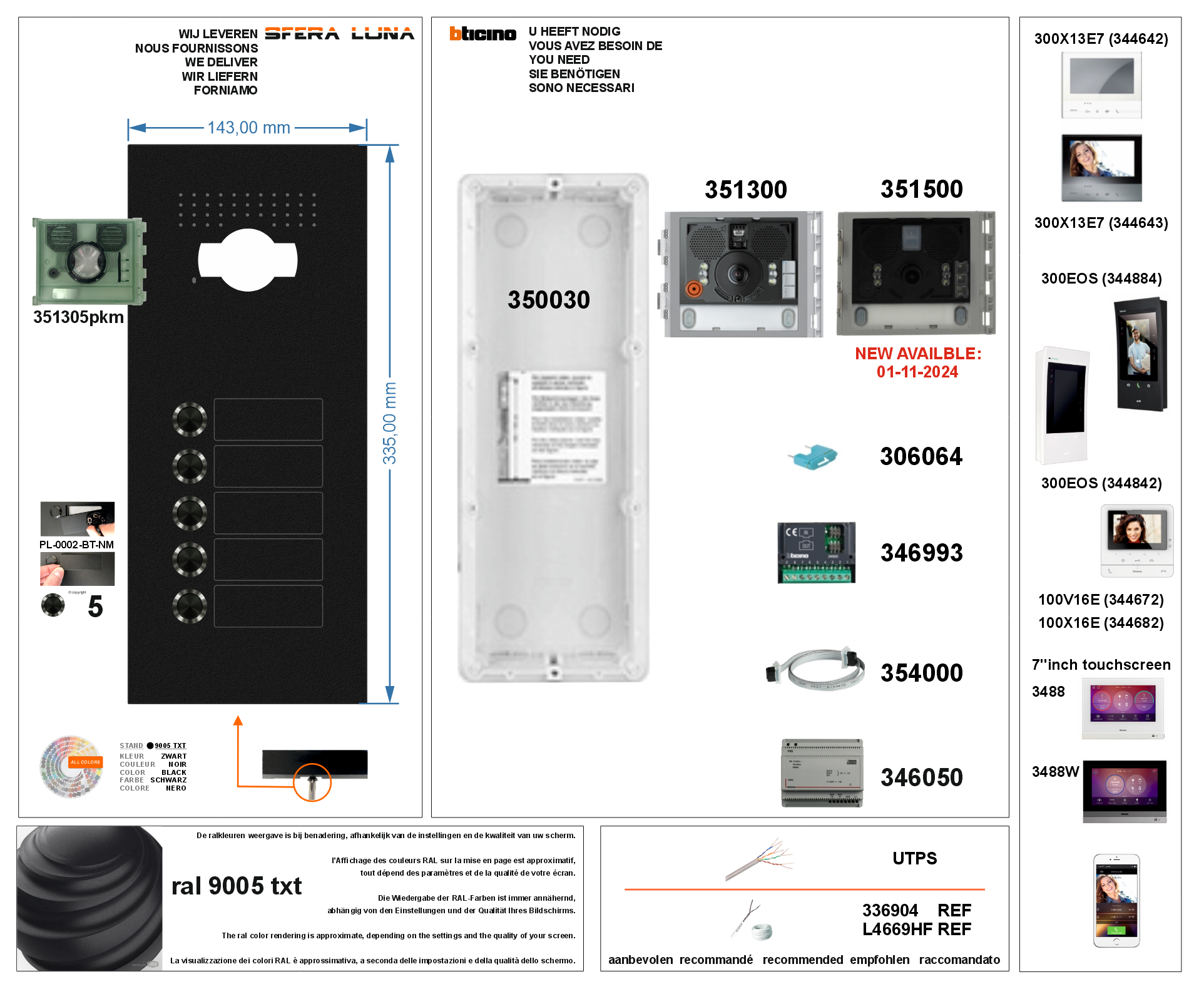 Pour poste extérieur Bticino 2 fils module poste extérieur Bticino 351300 ou 351500 avec objectif grand angle angle de vue: horizontal 135°- vertical 96° Un design épuré. Elégant à l'entrée de votre maison, appartement, portail ... Platine de rue design, standard disponible en RAL 9005 structuré (structure fine) Ces platines de rue sont disponibles dans toutes les couleurs RAL, assorties avec la couleur RAL de votre maison ou projet. Avantage: des plaques nominatives amovibles, donnant à votre résidence/appartement un aspect soigné et uniforme