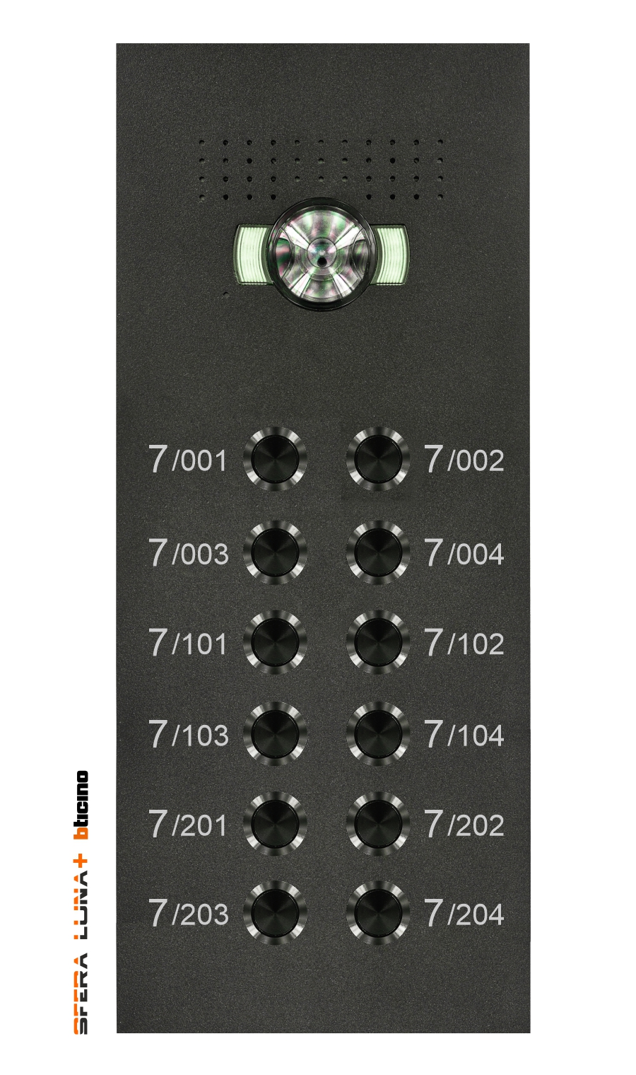 Cette platine de rue Sfera Luna E 12 est prévue d'une numérotation/désignation gravée (au choix).