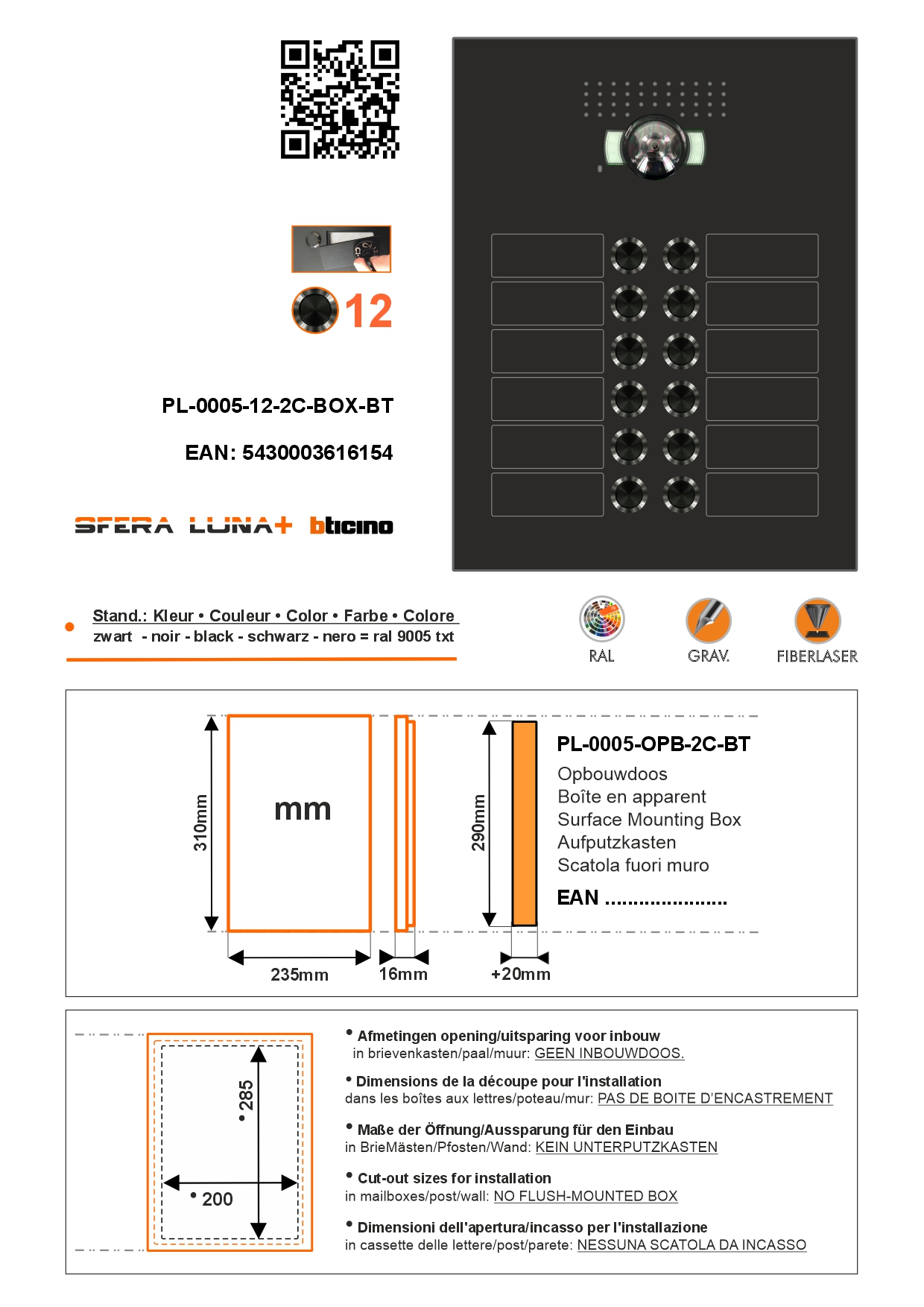 - Platine de rue de vidéo-parlophonie voor inbouw in brievenkasten SFERA LUNA BOX avec 12 boutons de sonnette + 12 plaques nominatives amovibles