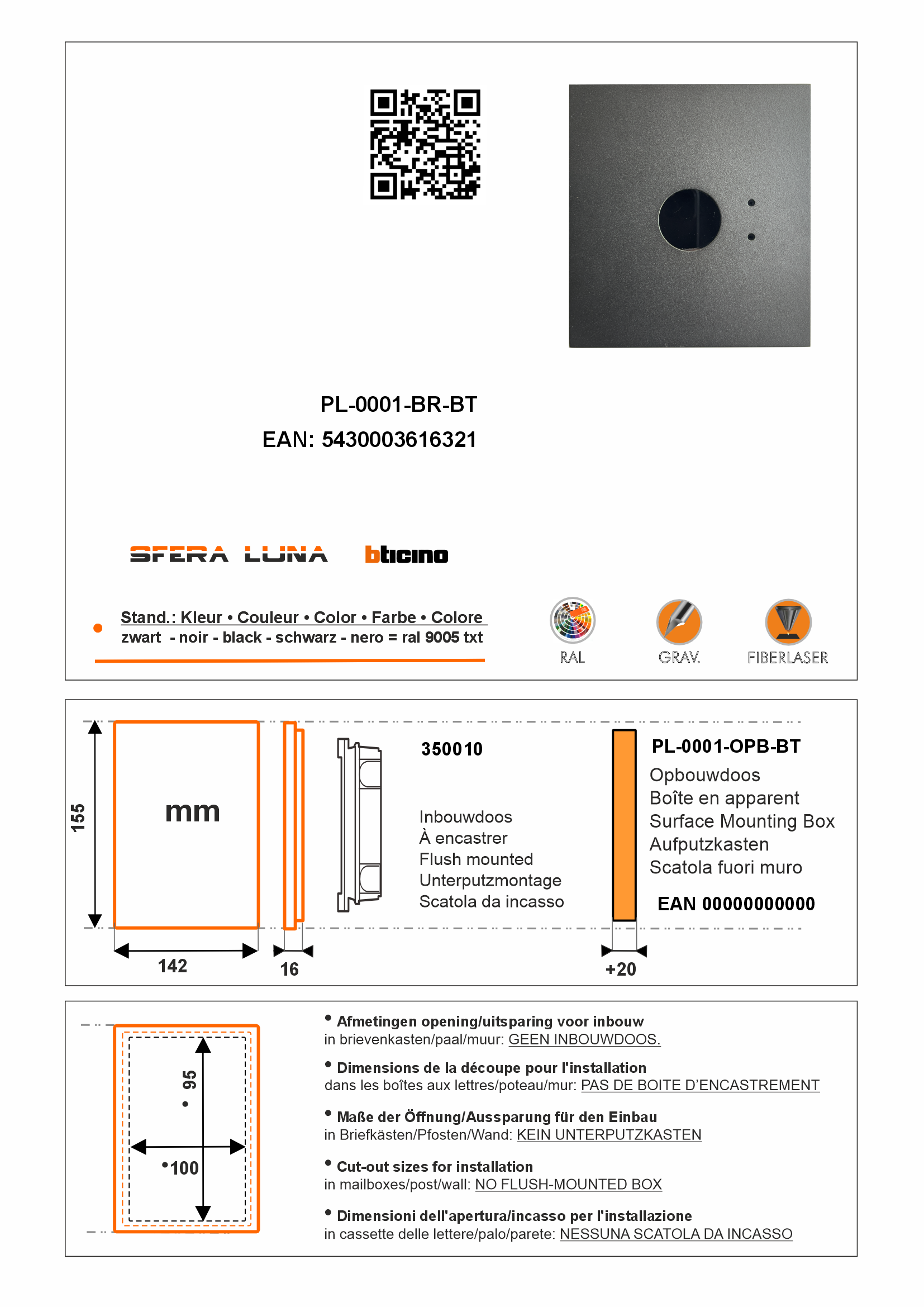 Frontplatte SFERA LUNA Transponder-Lesegerät für Bticino Türstation