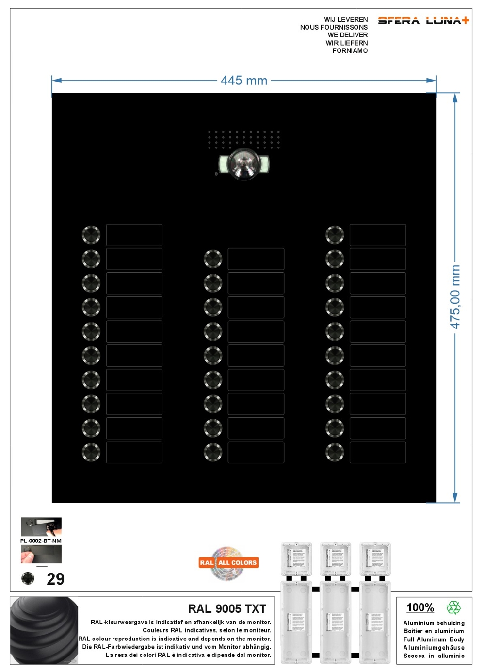 Platine de rue SFERA LUNA 29 boutons de sonnette pour vidéo-parlophonie Bticino
